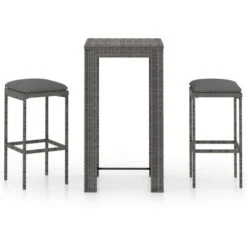 Set Muebles Bar Jardín 3 Piezas Y Cojines Ratán Sintético Gris