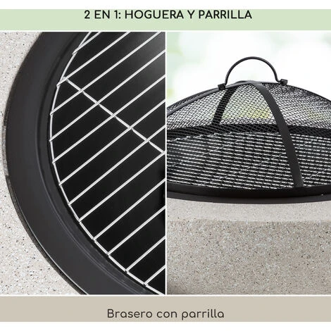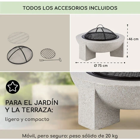 Con una superficie de 75 cm la hoguera Troja de Blumfeldt cuenta con suficiente espacio para hacer un abundante fuego ya sea de carbón o de leña. El elegante diseño decorativo del recipiente eleva el recipiente de piedra artificial, otorgando al chispeante infierno una impresión aún más impactante. Cuenta con una rejilla protectora que evita que chispas o brasas puedan salir desprendidas. En el envío se incluye un atizador para mover la rejilla atrapa chispas así como para poder manipular las brasas o el fuego. Además, un colador para ceniza garantiza que la ceniza sobrante se acumule en el fondo del recipiente mientras que las brasas pueden quemarse limpiamente. En la parte inferior cuenta con un escudo que protege el césped o el pavimento del calor y los daños que pueda ocasionar. Así podrá disfrutar de reuniones con amigos al calor de las llamas.