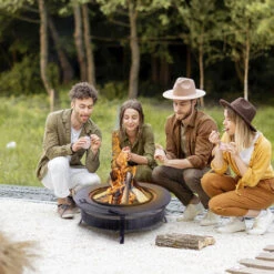 Brasero Exterior Ø56cm Con Protección Antichispas Y Parrilla, 2en1 Fogón Jardín Barbacoa, Con Gancho