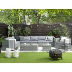 Conjunto De Fundas De Cojín Para Conjunto De Jardín De Poliéster Gris Para Asiento Y Respaldo