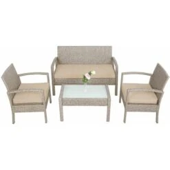 Blumfeldt Komfortzone Sofá Lounge De Ratán Dos Plazas Poliratán Mesa Plegable Gris