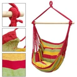 Hamaca Silla Colgante Asiento Columpio Para Jardín+2 Cojines Rojo/verde/amarillo