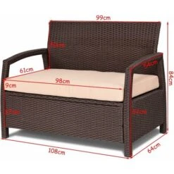 COSTWAY Sofá De Ratán Banco De Jardín Mueble Sillón 2 Plazas Con Cojín Desmontable