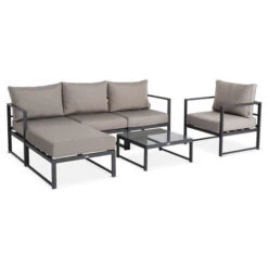 Conjunto De Jardín, Módulos De Aluminio, 5 Plazas, Marrón, Acatium