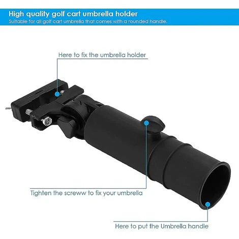 Duradero y fácil de instalarSoporte para paraguas de carro de golf de alta calidad, muy sólido y duradero. Fácil de instalar en el mango del carrito de golf^