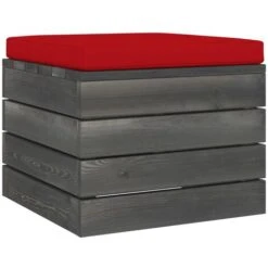Otomana De Palés Para Jardín Madera Con Cojín Gris Antracita