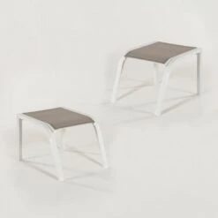 Pack 2 Reposapies De Exterior Apilables, Medidas 57x52x45 Cm, Aluminio Blanco Y Textilene Taupé