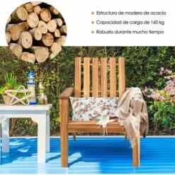 COSTWAY Silla De Jardín Sillón De Madera Taburete Con Apoyabrazos Asiento 68x73x85cm